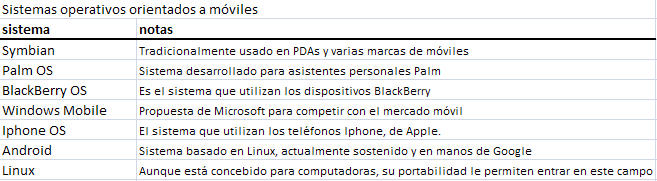 la siguiente tabla muestra algunos ejemplos de sistemas móviles.